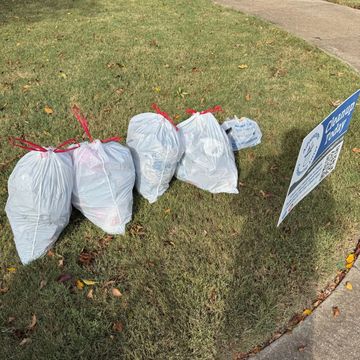 It is finally getting a little bit more comfortable early in the morning! Three volunteers cleared over 230 pounds of litter from the access road and the woods and drainage areas just south of Rowlett Creek on the northbound 75 access road.