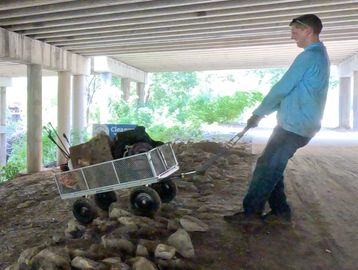 Fishing, cleaning up, and testing out reusable litter bags (onion sacks) from Keep Texas Beautiful.