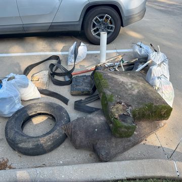 10 bags of trash removed from the shoreline. It's a pretty small pond, so you know it was a mess! Caught some bass and bluegill as well!
