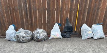 Several bags of litter plus cleaning up some illegal dumping of a mattress, a sofa, and a truck tire all led to our biggest single load yet at 238 pounds.