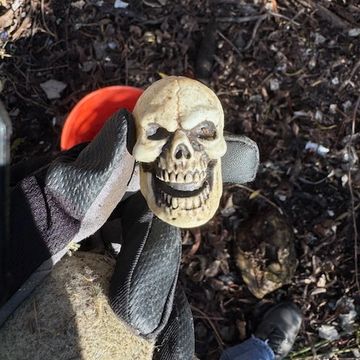 Picked up a bunch of candy wrappers, and quite a few unopened candy items, lost costume pieces, and other items lost on Halloween.